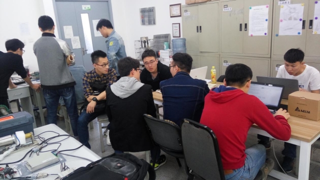 实验室是学习中心,这里有做实验需要的工具,有准备比赛所需的环境。各小组成员及感兴趣学生齐聚实验室学习中心,共同讨论,感受实验室的环境,首先刘国华老师嘱咐了一些实验室的注意事项,尤其是安全方面。然后成员感受实地操作调试设备。在这个环节中,上一届做比赛的学长也参与了进来,关于比赛的各个环节,同学们提出了许多问题,学长们提出了建议,悉心指导。