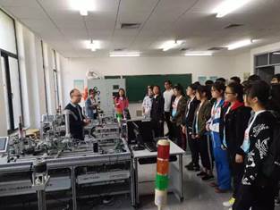 9月30日上午,天津市第二十五中学师生一行约150人进我校进行学访实践。其中高一年级的2个班级前往开云官方官网登录入口实验室参观学习。在机电专业实验室,杜宇老师讲解了模块式机电一体化实训平台原理,以及在生活中的应用;介绍了四旋翼无人机的构成及其控制器的编程方法。