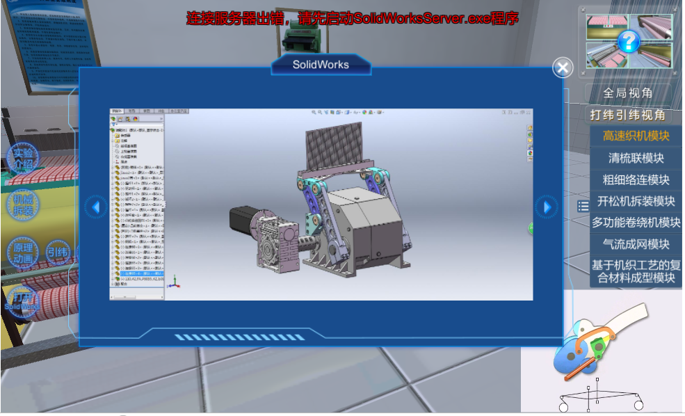 2020年2月17日至今,利用国家级虚拟仿真实验教学项目平台(http://www.ilab-x.com/)与天津市机械基础及纺织装备机械基础及纺织装备设计虚拟仿真实验教学平台,腾讯会议设计虚拟仿真实验教学平台(http://jd.tiangong.owvlab.net/virexp/),开展毕业设计专题指导。该平台提供7类纺织机械毕业设计实验模块,可进行工作原理学习、原理方案设计、动手拆装学习机器零件、三维设计及仿真实验等。