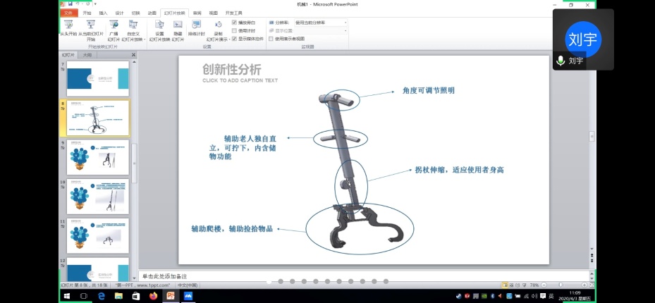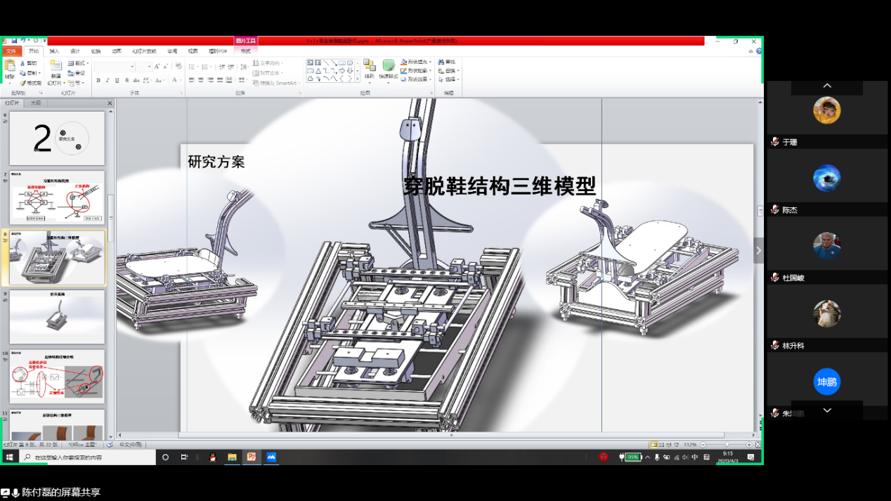 为进一步提高项目质量,督促项目进度,2020年4月3日,机械学院开展第九届全国大学生机械创新设计大赛校内选拔赛线上中期检查答辩报告会,答辩会场由负责师生队伍的刘文吉和张超老师组织,14位评委以及近百名参赛学生参会,会议分成两组进行答辩报告,确定了三个等级,后期给予不同经费支持。